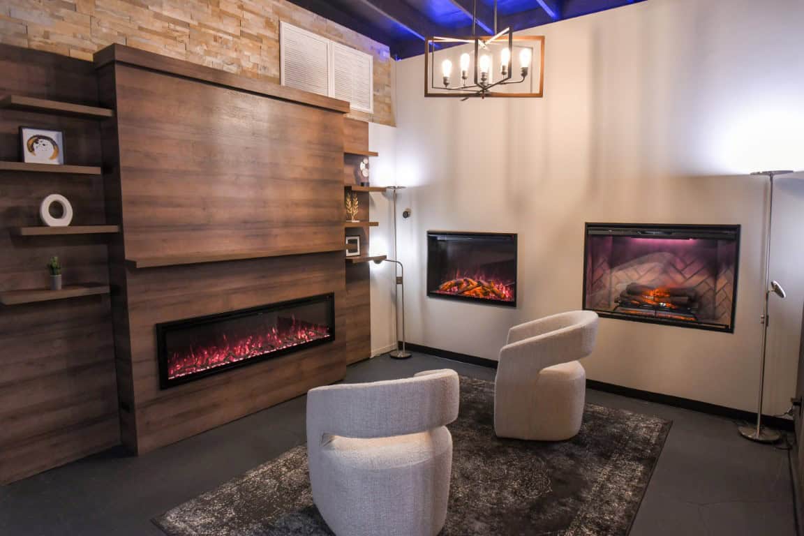 Visit our Mesa, AZ showroom to see dozens of electric, gas, logs, glass, & media walls on display. Get expert advice, see finishes in person, and explore all your options before you buy.