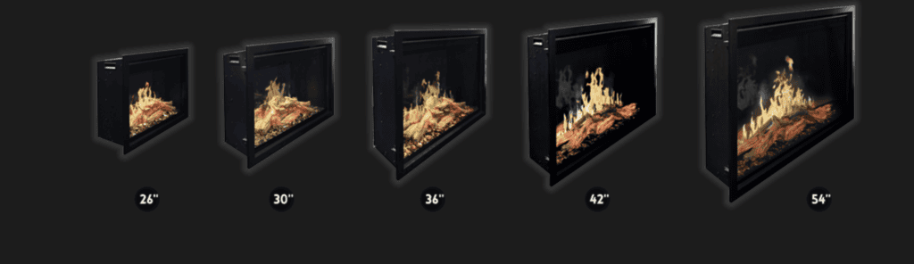 The Modern Flames is available in five sizes (measured by width). From smallest to largest, you can choose from a 26”, 30”, 36”, 42” and 54” built-in or insert.