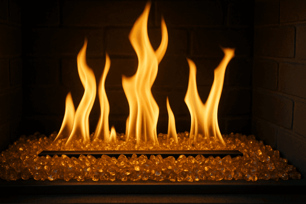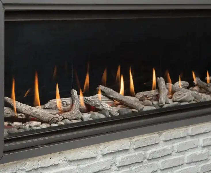 - Full gas burner, logs, cannonball, fire glass, and fire art installations